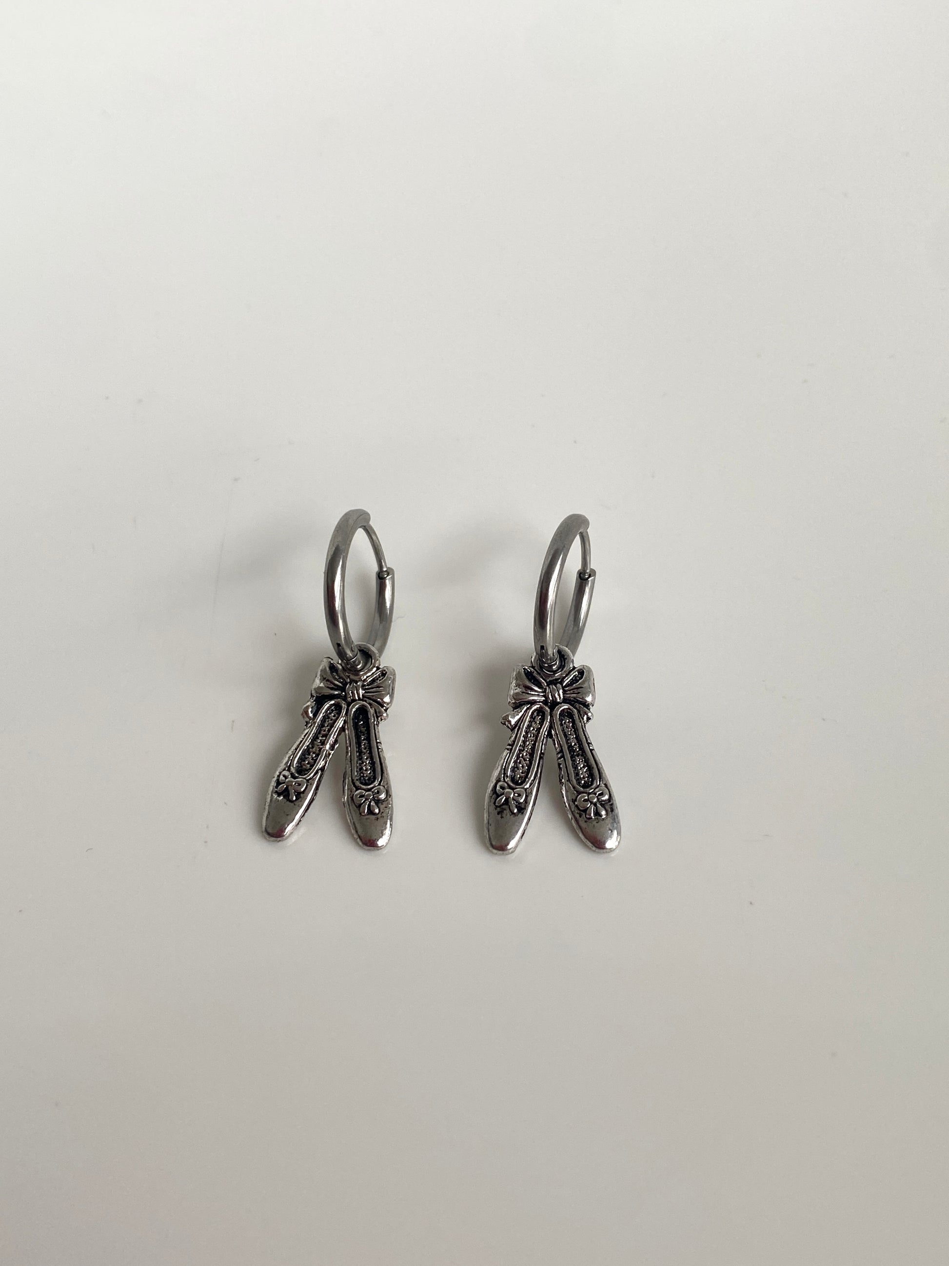 Charming silver earrings adorned with delicate ballet shoes pendants, made out of stainless steel for enduring elegance and durability. Perfect for coquette trend lovers, these earrings capture the grace and beauty of ballet, adding a touch of femininity and sophistication to any ensemble.