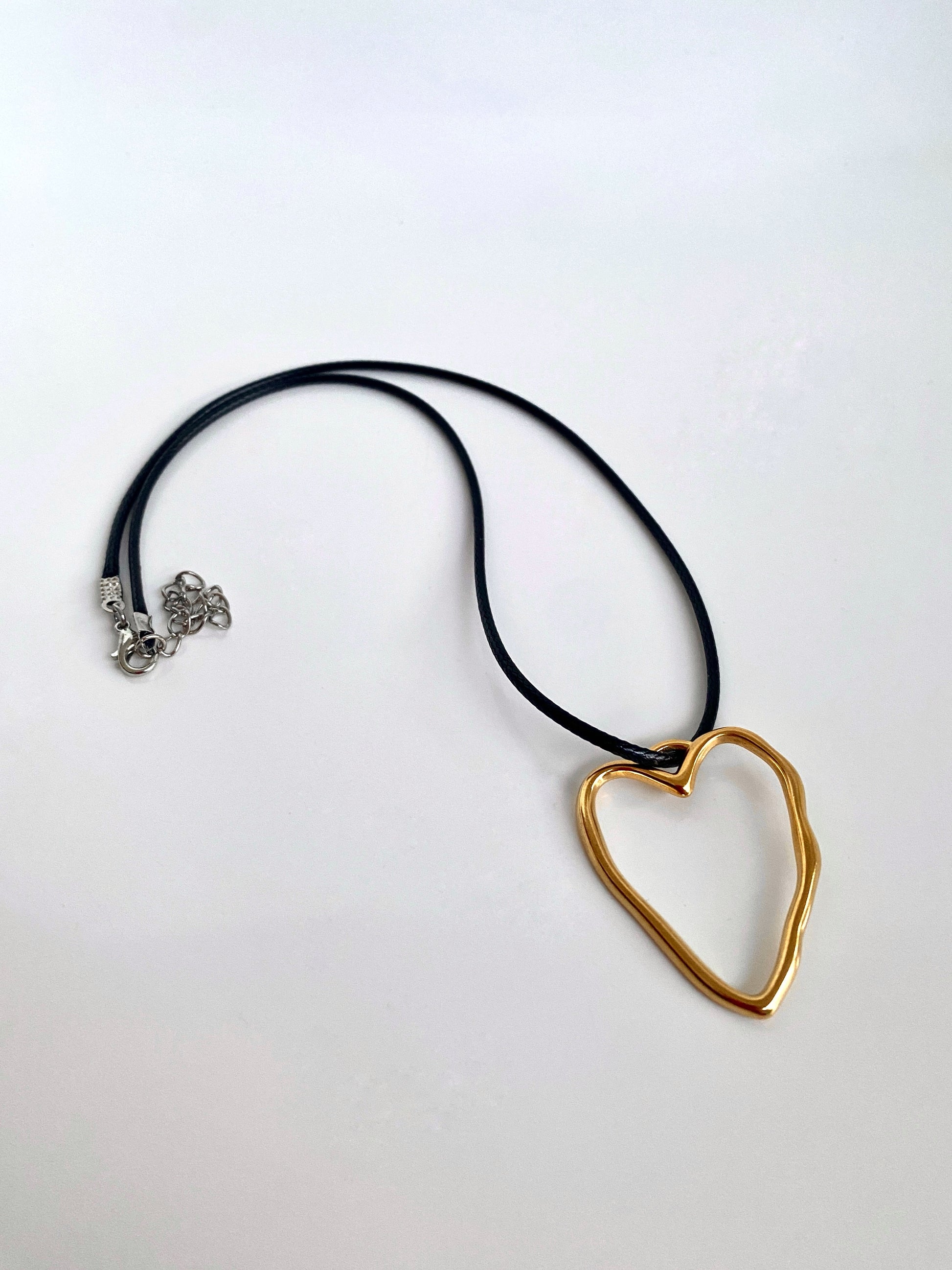 Make a bold statement with our handmade black cord necklace, showcasing a striking heart-shaped pendant crafted from high-quality stainless steel. Elevate your ensemble with this captivating accessory, blending contemporary flair with timeless elegance for a look that speaks volumes.