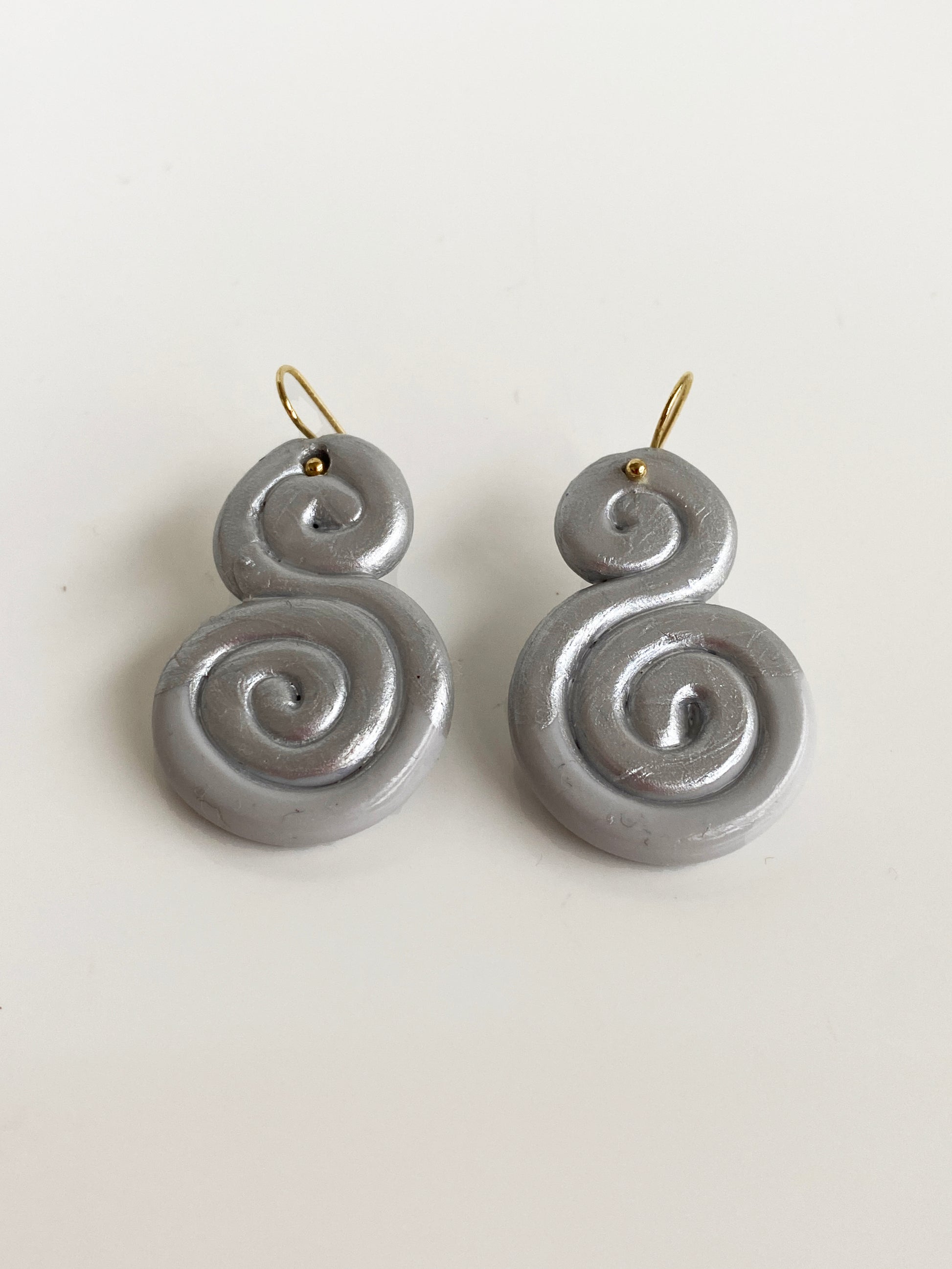 Elevate your accessory game with our artisan-crafted spiral S-shaped clay earrings, meticulously handcrafted in sophisticated grey clay and finished with a stunning silver coating. Complete with versatile gold hooks for effortless customization, these earrings exude contemporary elegance and timeless charm, perfect for adding a touch of unique style to any ensemble.